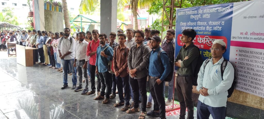 नांदेड| जीवनातील अडचणीतून संधी शोधणाऱ्याला यशाचा मार्ग सापडतो. आजच्या समाजातील बेकारीची समस्या सोडवण्यासाठी उद्योगक्षेत्र आणि ऍकेडेमिया यांच्यातील दरी कमी करून फिनिशिंग स्कुल प्रोग्रॅमद्वारे उद्योगक्षेत्राला अपेक्षित मनुष्यबळाची निर्मिती व्हावी, असे मत तंत्रशिक्षण संचालनालय, विभागीय कार्यालयाचे सह-संचालक उमेश नागदेवे यांनी व्यक्त केले. नांदेड शहरातील ग्रामीण टेक्निकल अँड मॅनेजमेंट कॅम्पसच्या ट्रेनिंग अँड प्लेसमेंट विभाग व जिल्हा कौशल्य विकास, रोजगार व उद्योजकता मार्गदर्शन केंद्र नांदेड यांच्या संयुक्त विद्यमाने आयोजित प्लेसमेंट फेस्टिवल 2024 च्या उद्घाटनप्रसंगी बोलत होते.