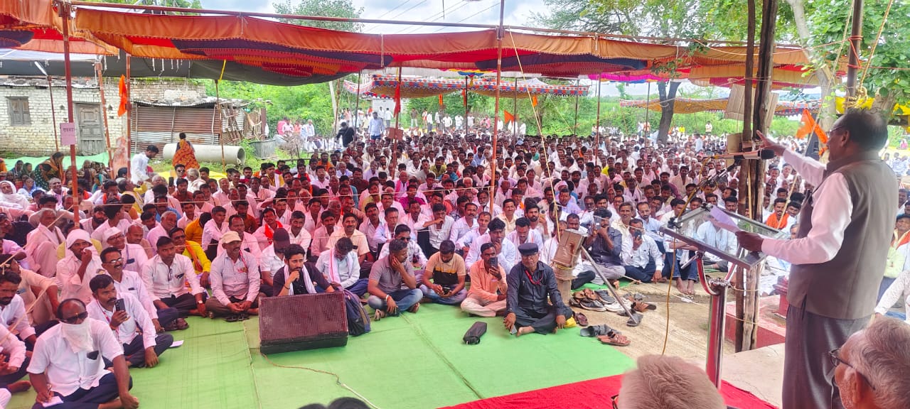 हिमायतनगर /नांदेड | विदर्भ मराठवाडा सीमेवरील पैंगनगा नदीवर सहस्त्रकुंड जलविद्युत प्रकल्पांला मंजुरी देण्याची मागणी हदगाव, उमरखेड विधानसभा मतदारसंघाचे आमदार यांनी विधानभनात केल्यानंतर बुडीत क्षेत्रात येणाऱ्या पैनगंगा नदी काठच्या शेतकऱ्यांनी गावोगावी बैठका घेऊन या प्रकल्पाला विरोध दर्शविला आहे. जान देंगे जमिन नही देंगे हा नारा देत लोकप्रतिनिधीसह सरकारच्या विरोधात एल्गार पुकारला असुन, रद्द झालेला प्रकल्प पुन्हा कुणाच्या हितासाठी उभा करीत आहात शेतकऱ्यांना सिंचनाचा प्रश्न सोडवायचा तर नदीवर बंधारे बांधा सात हजार कोटींचा प्रकल्प कशासाठी असा सवाल उपस्थित करत विदर्भ मराठवाड्यातील शेतकऱ्यांची संयुक्त महासभा सिरपल्ली येथे दिनांक 9 रोज शनिवारी संपन्न झाली आहे. सभेला जवळपास चाळीस गावचे हजारो महिला पुरुष शेतकऱ्यांनी उपस्थित राहून प्रकल्पाला कडाडून विरोध दर्शविला आहे.