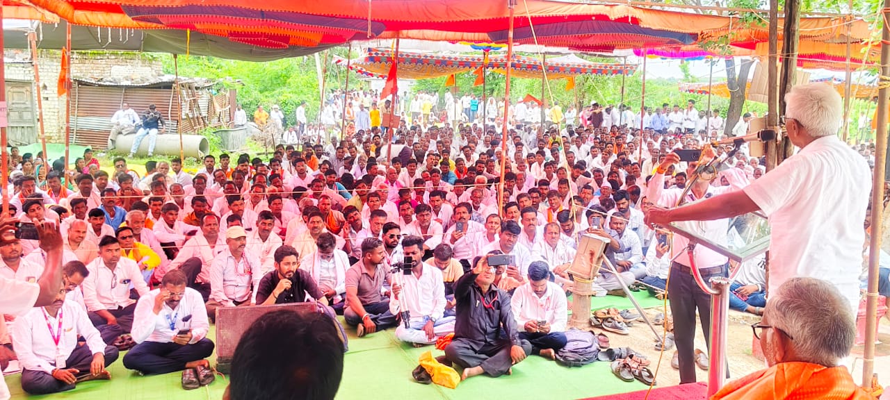 शनिवारी सिरपल्ली येथे चाळीस गावच्या शेतकऱ्यांची संयुक्त सभा घेण्यात आली. या सभेत शेतकऱ्यांनी जान देंगे लेकीन जमिन नही देंगे असा एक मुखाने आवाज उठविला असुन बैठकीत ठराव पारीत केला आहे. या लोकप्रतिनिधींना शेतकऱ्यांचा विकास करायचा असेल तर त्यांनी पैनगंगा नदी काठावर बंधारे बांधून सिंचनाचा प्रश्न सोडवावा परंतु प्रकल्प करून शेतकऱ्यांच्या शेकडो हेक्टर जमिनी प्रकल्पायध्ये टाकून शेतकऱ्यांना नेस्तनाबूत करण्याचा प्रयत्न असेल तर शेतकरी लोकशाही मार्गाचा अवलंब करून धडा शिकवणार असल्याचा इशारा सरकारसह लोकप्रतिनिधींना या बैठकीत दिला आहे. या बैठकीसाठी चाळीस गावच्या शेतकरी महिला पुरूष , अबाल वृद्दांची मोठ्या संख्येने उपस्थिती होती. दरम्यान बैठकीसाठी पोलिस बंदोबस्त तैनात करण्यात आला होता.